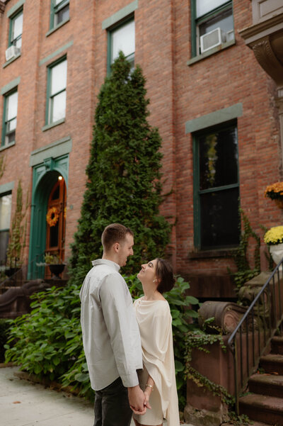 On a Sunday afternoon in October—just a few hours before a nor’easter showed up—Maddy and James met me in Troy for their engagement session. It turned into a playful race to see how many photos we could squeeze in before the rain started.